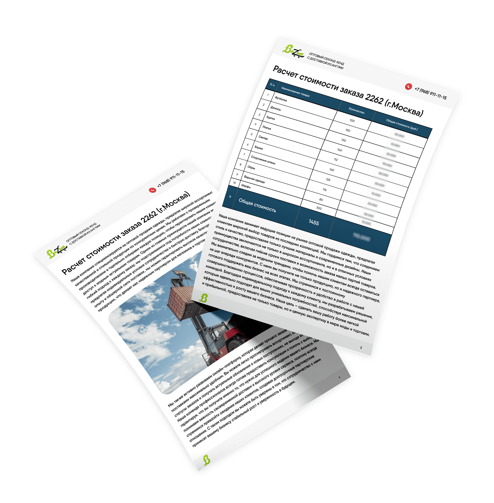 Получите подборку товара и расчет стоимости заказа под ваш объем!